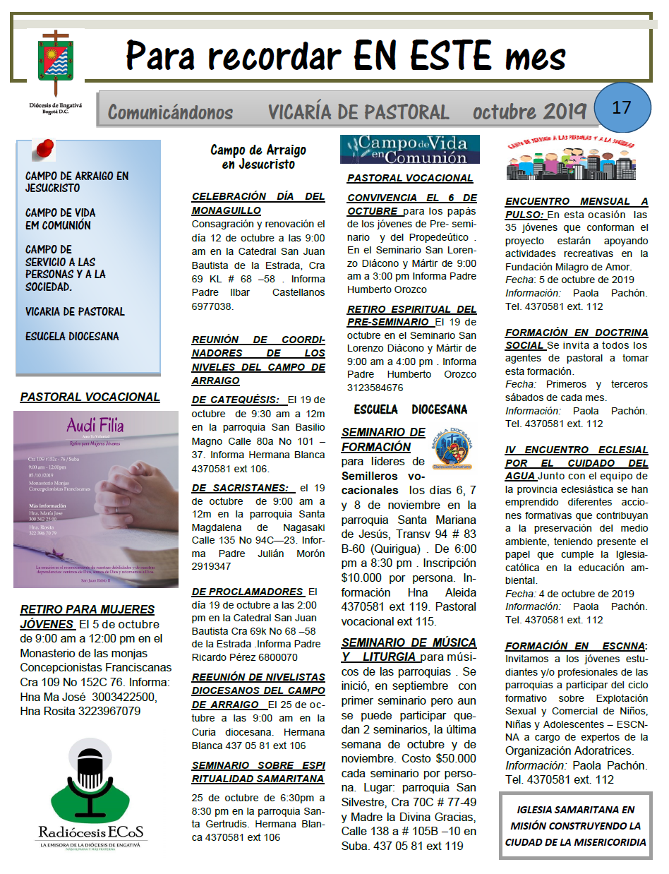 Vicaría de Pastoral: mayo mes de la familia y las vocaciones