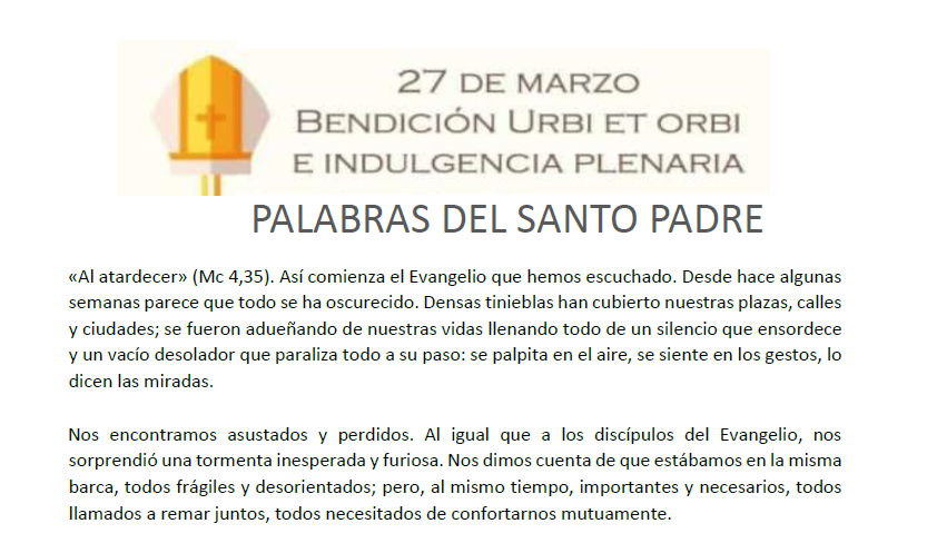 27 DE MARZO BENDICIÓN URBI ET ORBI E INDULGENCIA PLENARIA