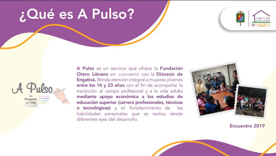 Anterior Siguiente Este semestre la Diócesis de Engativá junto a la Fundación Otero Liévano, realizarán el Proceso de Selección del proyecto educativo A Pulso, desde el 16 de agosto al…