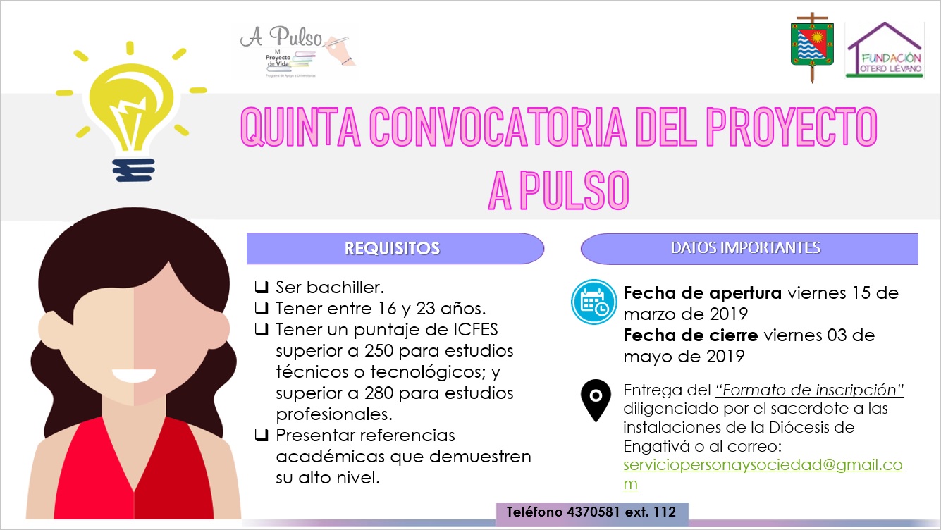 El programa «A Pulso» en convenio con la Fundación Otero Liévano y la Diócesis de Engativá, promueve la educación a través de una ayuda integral a jóvenes mujeres, en condiciones de vulnerabilidad, que residan en las localidades de Engativá, Suba y el municipio de Cota. Este programa incluye seguimiento en psicología, trabajo social y orientación académica en materias trasversales como son: matemáticas, lecto-escritura e inglés. De igual forma un voluntariado que le permite a la joven sensibilizarse de las problemáticas sociales actuales, además de adquirir experiencia laboral.